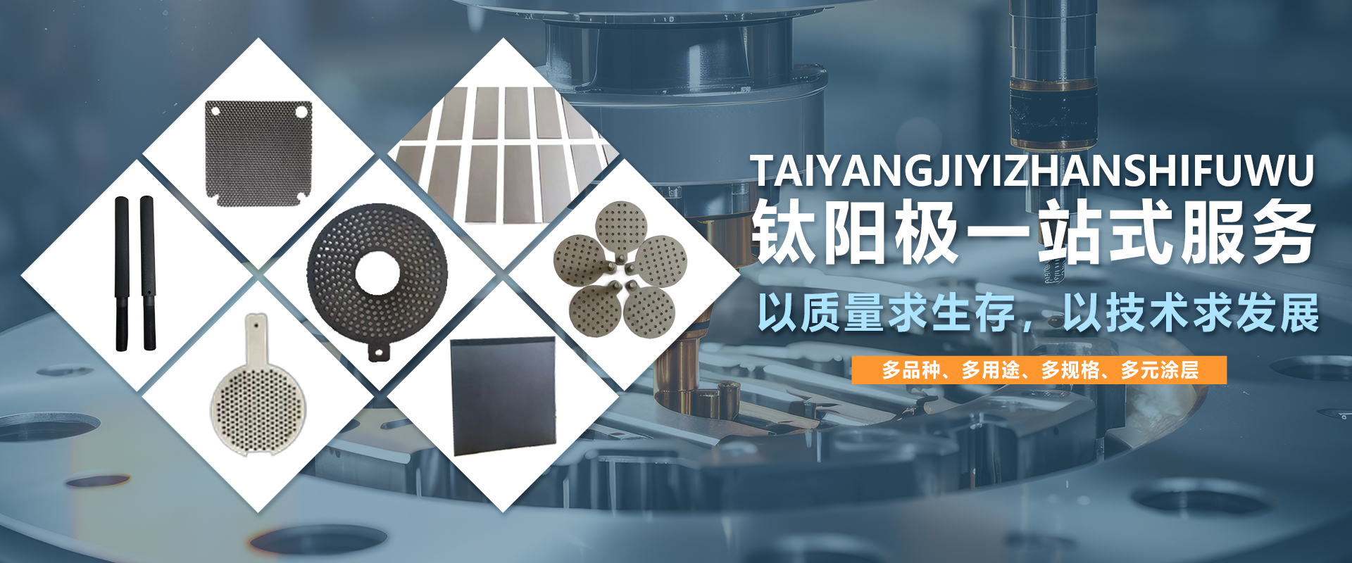 公司主要产品有:钌系、铱系、铂系钛阳极等。我公司发展至今已开发生产出一系列多品种、多用途、多规格、多元涂层的钛阳极,性能稳定、电流效率高、节能效果显著、使用寿命长。产品广泛应用于化工、冶金、石油、纺织、医药、轻工、环保、体育、矿山、海洋、阴极保护、水处理设备等领域。